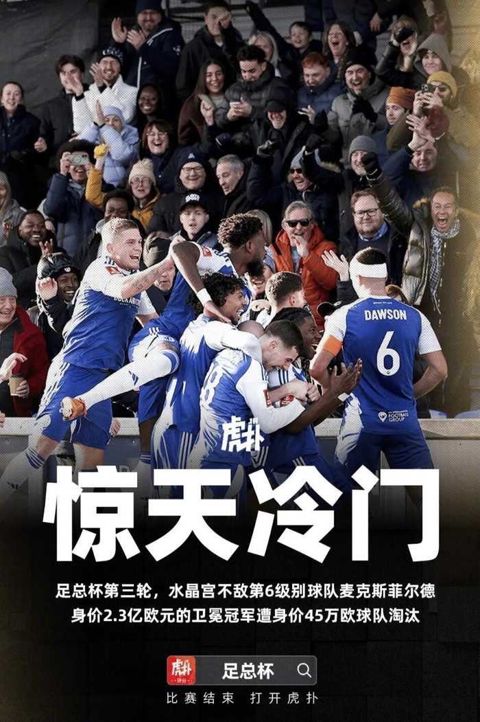 足总杯爆117年最大冷门,水晶宫遭半职业队淘汰